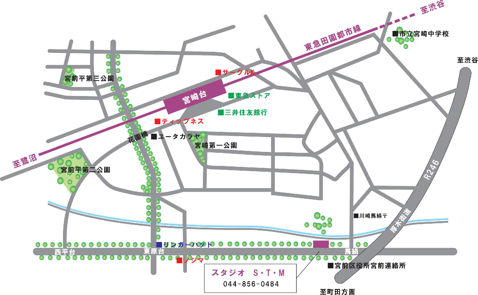 神奈川県川崎市宮前区馬絹1451番地 アズマ宮崎台マンション内 2F スタジオS.T.M